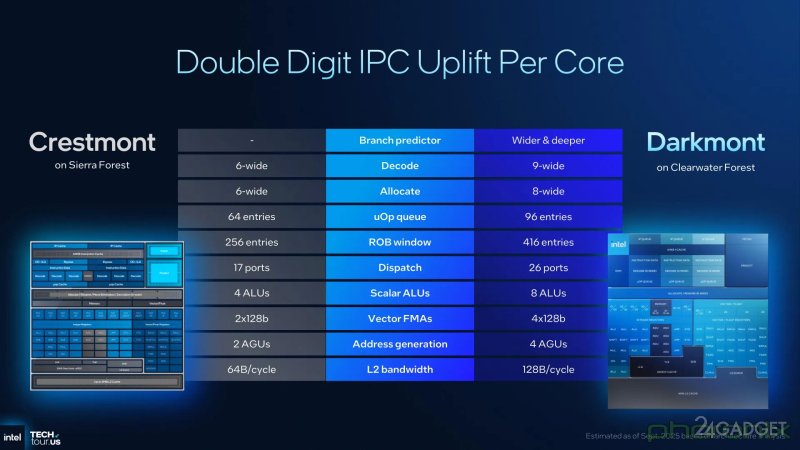 Intel представила 288-ядерные процессоры Clearwater Forest, основанные на ядрах Darkmont и техпроцессе 18A (7 фото)