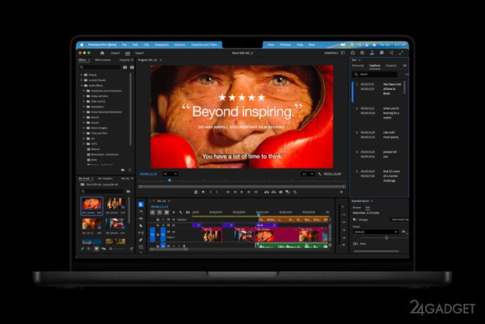 - до 7,7 раза выше производительность в ИИ-обработке видео в Topaz Video по сравнению с 13-дюймовым MacBook Pro с M1 и до 1,8 раза выше, чем у 14-дюймового MacBook Pro с M4;