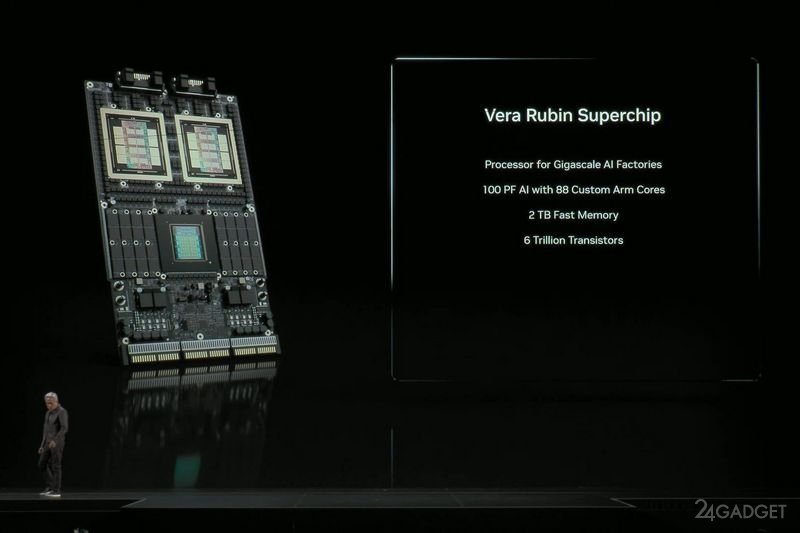 Хуанг показал Vera Rubin Superchip — CPU, два огромных GPU и 100 Пфлопс на одной плате для ИИ нового поколения (4 фото)