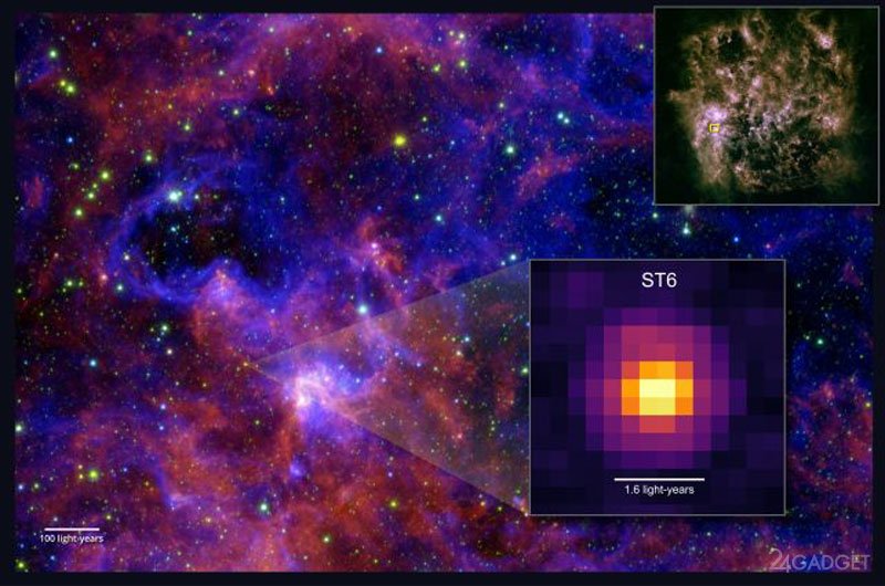 В нашей галактике замороженные сложные органические молекулы обнаружены в четырёх местах. После сделанного открытия одно такое место обнаружено теперь за пределами галактики — в Большом Магеллановом Облаке (БМО). Лёд с вкраплениями таких молекул выявлен у молодой звезды ST6 в сверхпузыре под названием N158 недалеко от Туманности Тарантул. Интересно также отметить, что химический состав Большого Магелланова Облака сильно отличается от состава Млечного Пути.