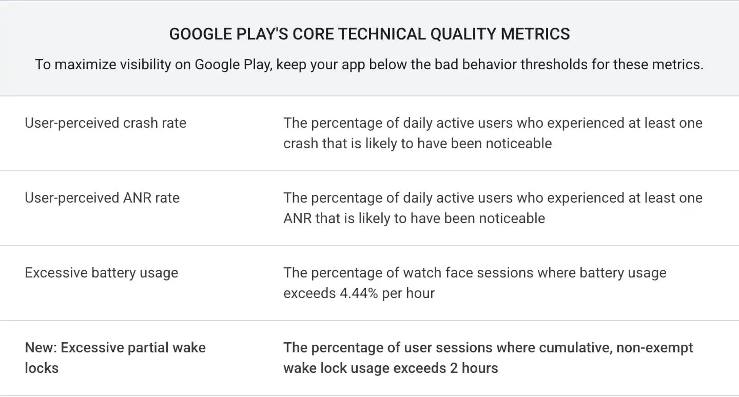 Превышение этого порога, приведёт к исключению приложения из рекомендаций в Google Play. Кроме того, в результатах поиска появится предупреждение о высокой фоновой активности программы.