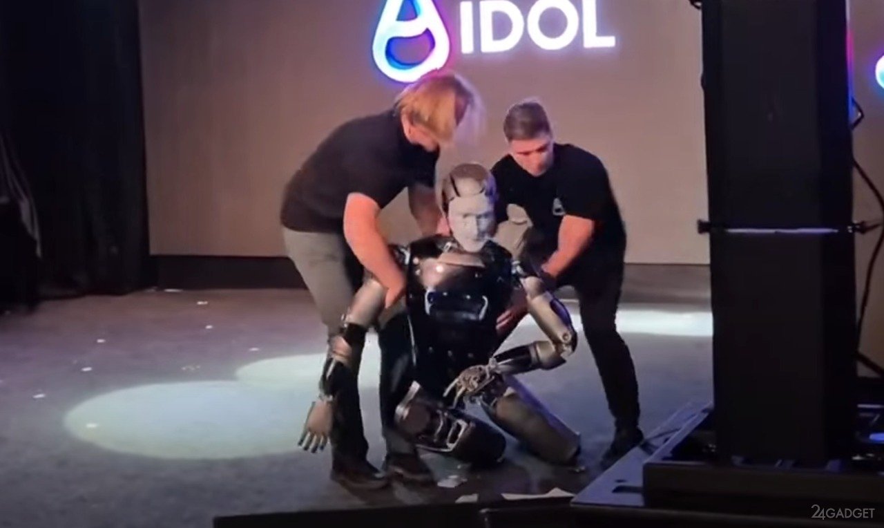 В России представили первого антропоморфного робота с искусственным интеллектом — его назвали Aidol. Как отмечают в Новой технологической коалиции, организации, занятой разработкой таких роботов, «Айдол» способен работать полностью автономно, не подключаясь к облаку, и при этом демонстрирует богатую мимику и эмоции. Правда, во время презентации робот не смог продемонстрировать свои умения — сразу после выхода на сцену он упал.