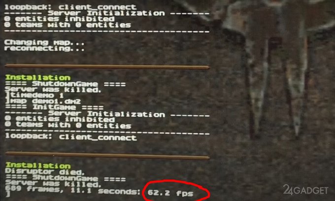 Он также сообщил, что ещё более смелая попытка запустить два 3D-ускорителя 3dfx Voodoo2 в режиме SLI (что и в оригинальных системах 1998 года сделать было непросто) не удалась и привела к краху системы.