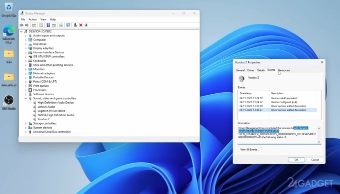 После отключения обязательной проверки подписи драйверов экспериментатору удалось запустить систему и под управлением практически современной ОС Windows 11 23H2. «Теперь у нас есть 3D-ускоритель 1998 года выпуска, использующий драйвер, основанный на службах, написанных для Windows NT 1996 года, который успешно работает в Windows 11 23H2», — с иронией прокомментировал своё достижение Omores.