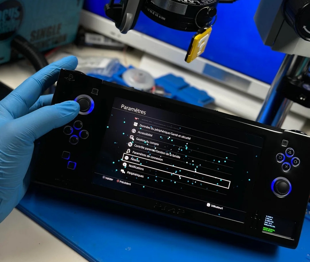 В основе устройства — оригинальная системная плата PS4 Slim, которую энтузиаст урезал по размеру, насколько это было возможно без нарушения функциональности. Она помещена в напечатанный на 3D-принтере корпус и дополнена 7-дюймовым OLED-экраном с разрешением 1080p. Самодельная АКБ, отвечающая за автономное питание, набрана из шести элементов формата 21700 ёмкостью по 6000 мАч.