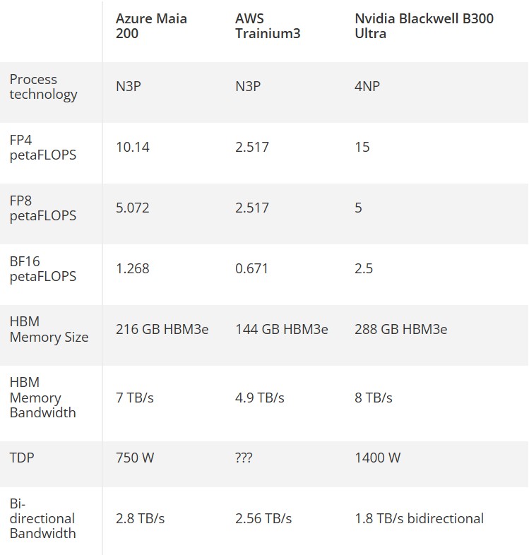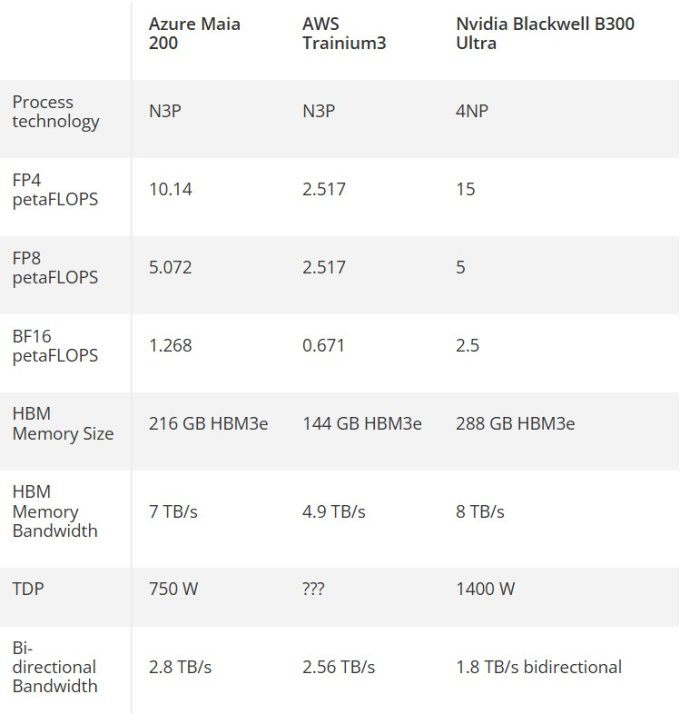 По сравнению с моделью Maia 100 новинка, согласно спецификации, обеспечивает 30-процентный прирост производительности на вложенный доллар. По данным профильных СМИ, Maia 200 превосходит NVIDIA B300 по части энергоэффективности и работает при почти вдвое меньшем TDP — 750 Вт против 1400 Вт.