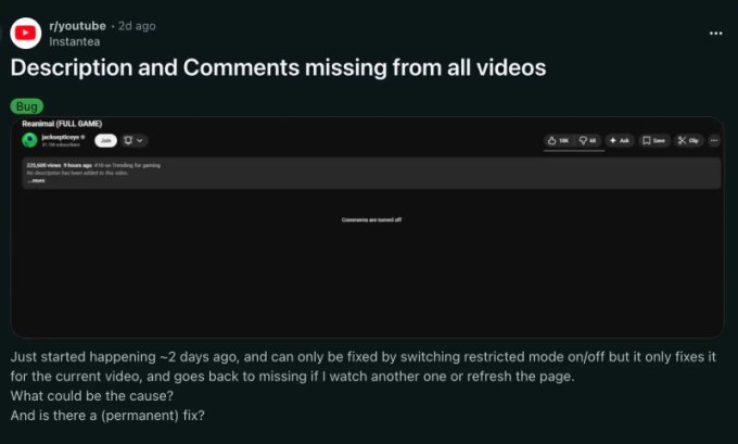 Пользователи браузеров со встроенными блокировщиками рекламы, таких как Brave и Vivaldi, также сообщают о подобных проблемах. То, что причиной отключения комментариев и описаний видео стали осознанные действия YouTube, подтверждают многочисленные сообщения на форумах и в социальных сетях. Пользователи утверждают, что комментарии и описания возвращаются после отключения блокировщиков рекламы.
