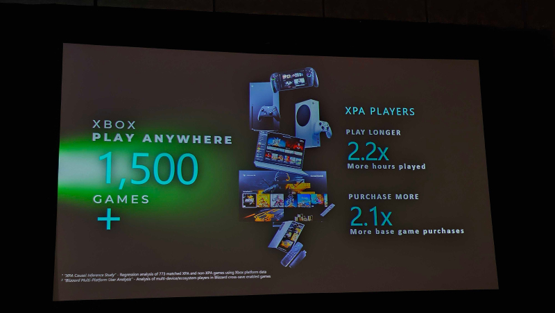 В рамках презентации на GDC компания Microsoft также затронула вопрос сокращения разрыва между разработкой игр для Xbox и Windows. Microsoft хочет, чтобы разработчики стремились к более унифицированной среде, чтобы основная часть кода игры могла работать как на Xbox, так и на Windows сразу, а не изменялась и дорабатывалась в процессе разработки отдельных сборок для двух платформ. Рональд упомянул программу Xbox Play Anywhere как часть этой стратегии. На официальной странице Microsoft Play Anywhere говорится, что поддерживаемые цифровые покупки можно запускать на консолях Xbox, ПК с Windows и поддерживаемых портативных устройствах без дополнительной платы. Рональд добавил, что каталог Xbox Play Anywhere теперь насчитывает более 1500 игр.
