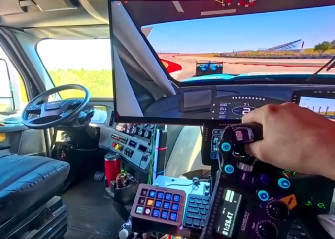 Дальнобойщик установил в кабину дорогой ПК с рулём, чтобы играть в гонки в пробках (5 фото)