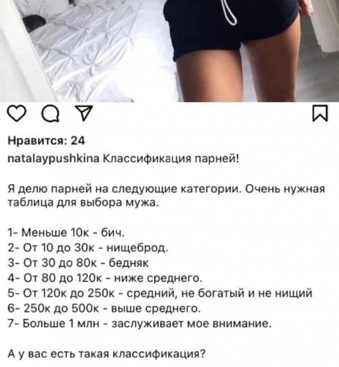 Запросы и наглость, или как знакомятся девушки в интернете 25 февраля 2022 | Просмотров: 67 650 | --- 12. Любимая рубрика под названием "Классификация парней" ‹ 1 ... 10 11 12 13 14 ... 18 ›
