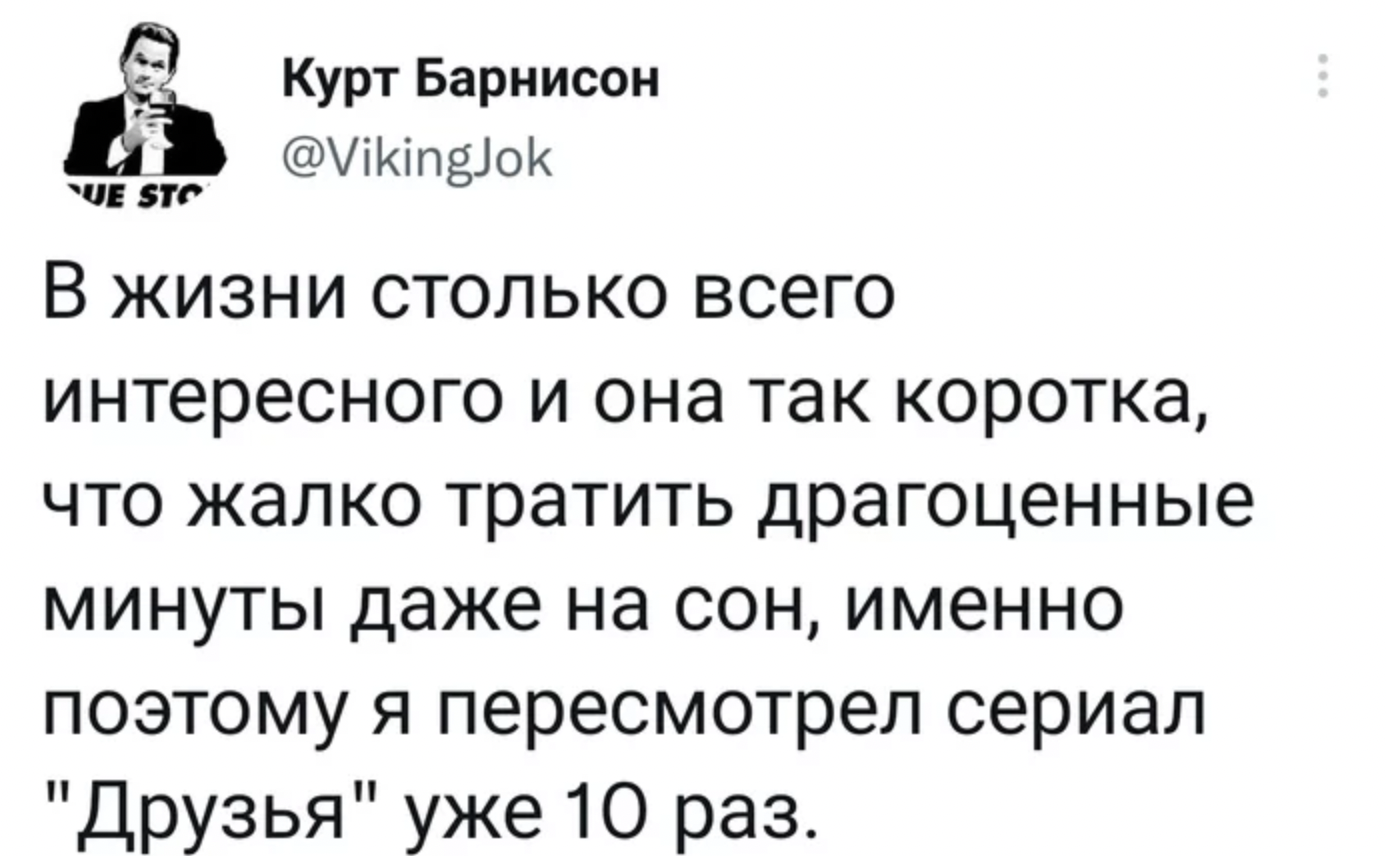 Очень точные и гениальные наблюдения из Твиттера, которые заставляют задуматься 24 февраля 2022 | Просмотров: 44 335 | --- Вконтакте Одноклассники 9. Жиза ‹ 1 ... 7 8 9 10 11 ... 17 ›